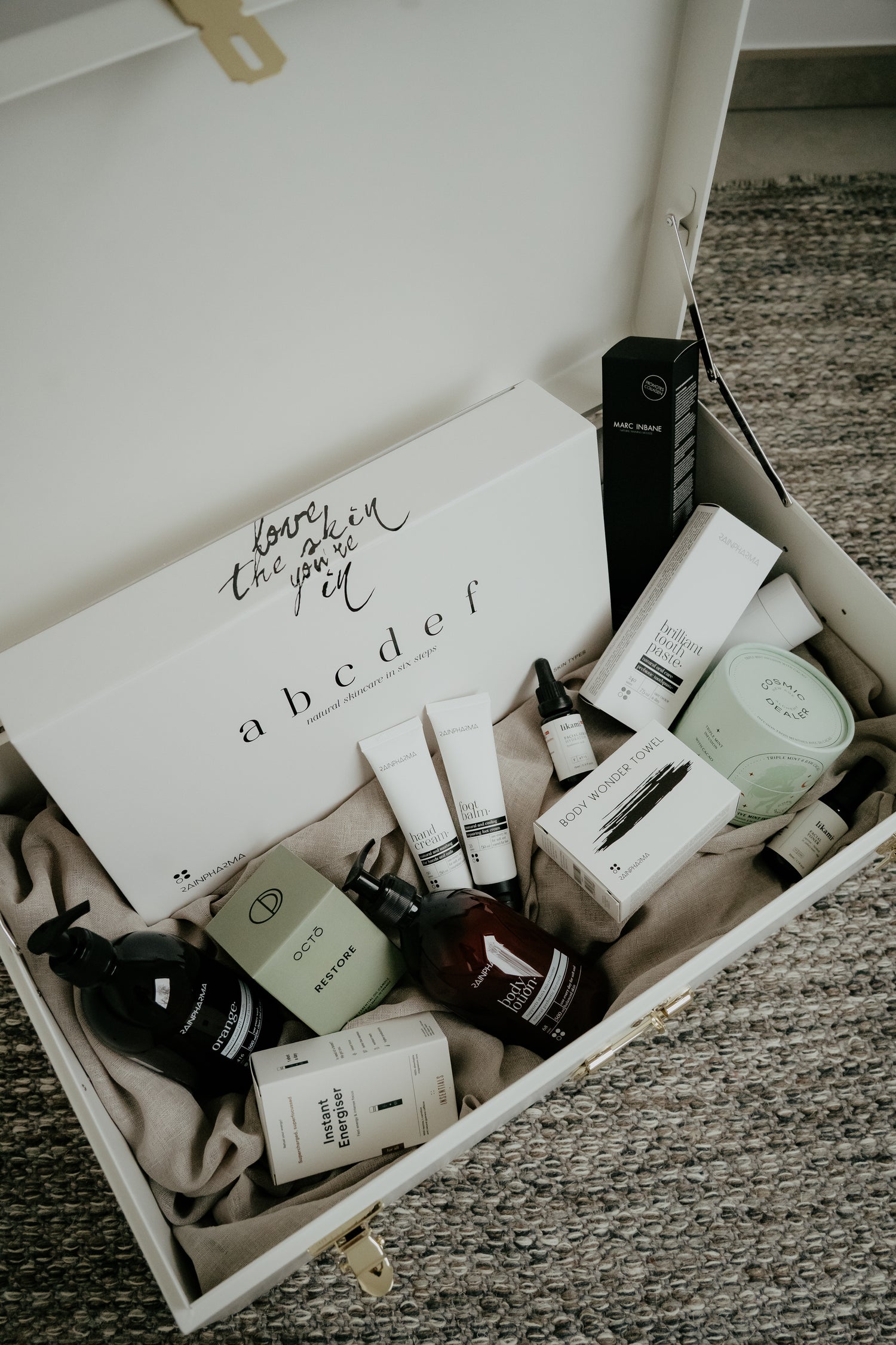 De grote koffer, de hoofdprijs ter waarde van €450. Een mix van RainPharma, Likami, Marc Inbane, Octo, Cosmic dealer en Insentials.